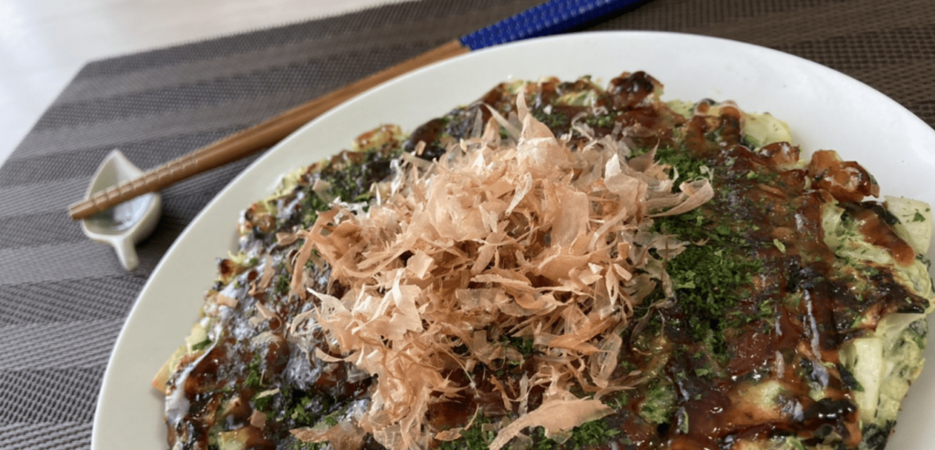 5.ソース、青のり、かつお節などお好みのトッピングをかけて出来上がり。
